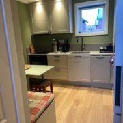 Gulvet ble lagt i et hus på vinterbro, og det var mye sjauing og flytting av møbler da kunden bodde der mens vi hellimte de nye guvene. Her var vi ikke særlig flinke til å ta bilder, men vi fikk dokumentert innpakningen av trappetrinnet ned til vinterhagen.
